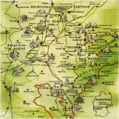 Der Bäderwinkel Bad Brambach-Bad Elster-Franzensbad-Marienbad-Karlsbad liegt in kurzer Entfernung von ca. 20-50km.